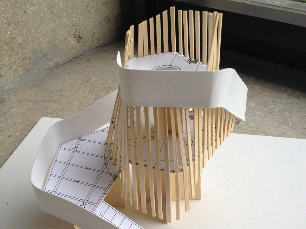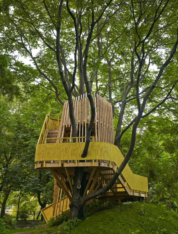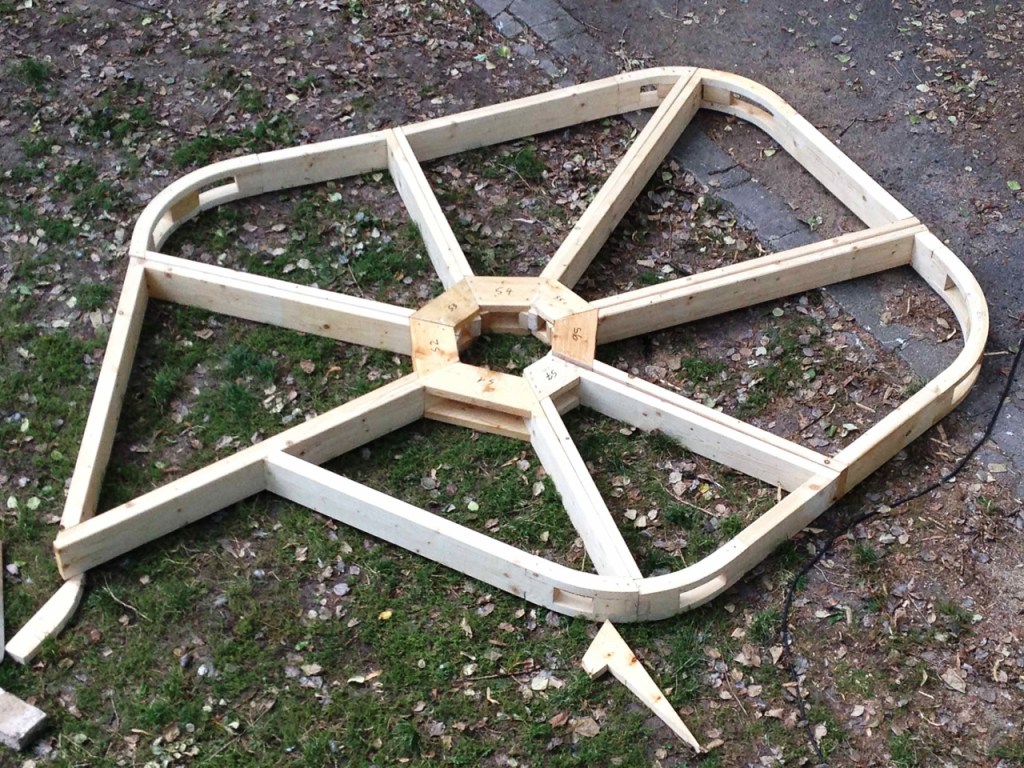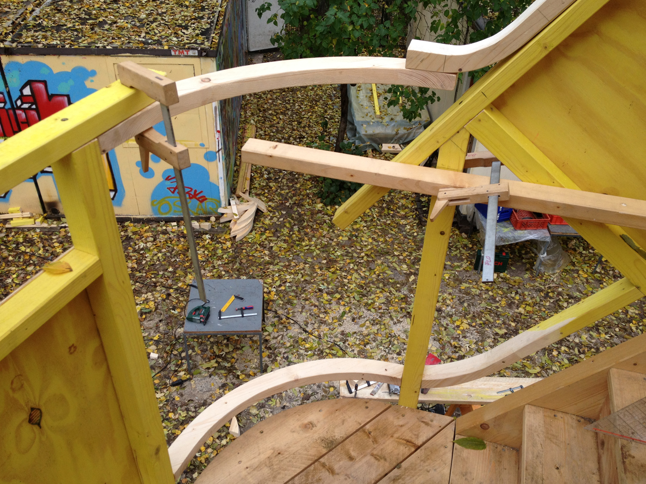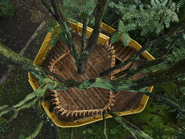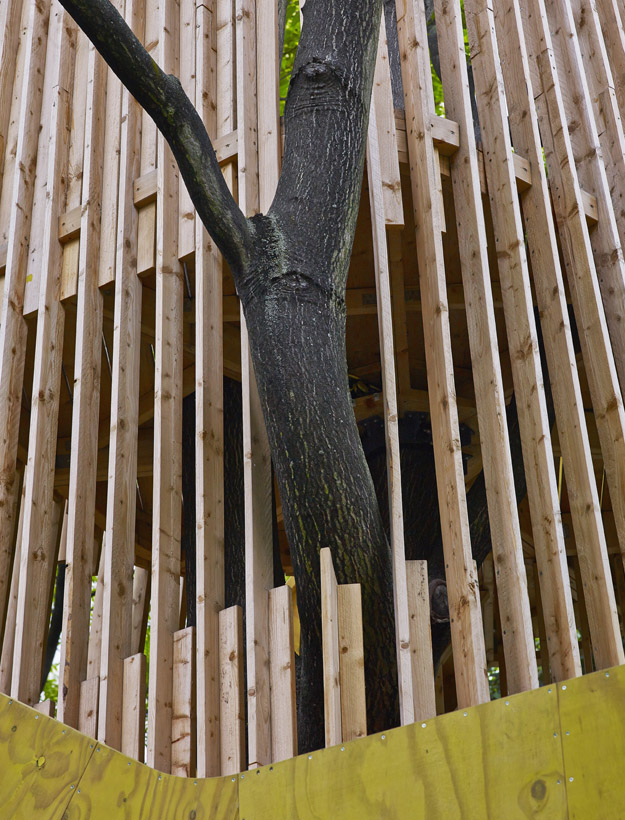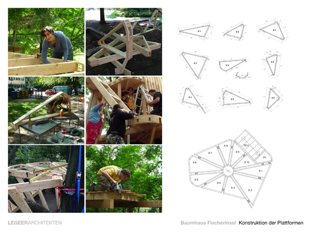 Konstruktionsprinzip der Plattformsegmente: Die Segmente wurden auf der Baustelle vorgefertigt und anschließend am Baum zusammengefügt.